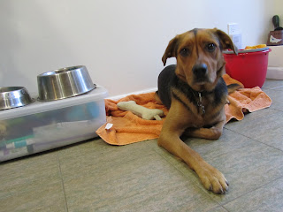 This year we decided to join the club and send out Christmas cards and I knew I had to take a cute photo of Lola to include. I wore her out at the park playing fetch so that she would wear her (homemade, bootleg) antlers and not fuss with them. I posed her on a red blanket on our bed with a little “Reindeer Food” bag I’ve had a few years and -voila!- adorable Christmas card. 😉