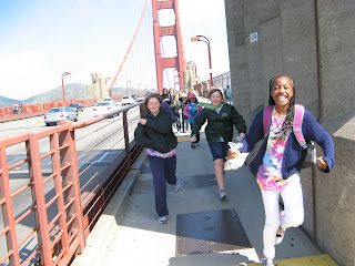 On Saturday morning I made my way to the hostel to meet the group so we could make our way to the Golden Gate Bridge for the Girl Scouts’ annual Bridging event! When girls in GS graduate from one level to the next they call it “bridging” so the Northern California GS organize a huge event so that girls from all over can “bridge” across the Golden Gate Bridge. Our girls graduated from GS Juniors to GS Cadettes (6th-8th grade). This event attracts over 4,000 girl members (that’s just girls we’re talking about!) and is put together really well. The GS hired shuttle buses to take troops across the bridge into Marin County and then we all hiked our way back across the bridge back into SF.
