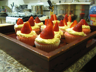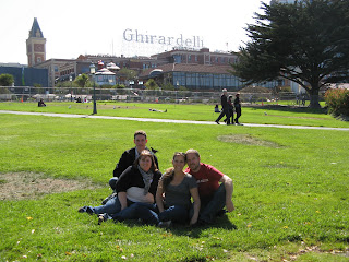 On Saturday I unfortunately had to work from 8:30am-2pm in Oakland so Kevin took them sight-seeing and then I met up with them near Golden Gate Park and we headed out to the Golden Gate Bridge to check out the sights. We made a pit stop to Bi-Rite Ice Cream Shop (a MUST for anyone visiting SF!) and enjoyed some honey lavender, raspberry white chocolate swirl, salted caramel, balsamic strawberry, and mint ‘n chip ice cream (are you hungry yet??). Mostly we just drove around the city and it was nice for Kevin and I to be tourists for a change. 🙂 Saturday night we were fortunate enough to be wined and dined by Sarah and Rob who made us a delicious dinner. And then Kevin and I surprised Sarah with some yummy strawberry cupcakes for her birthday.