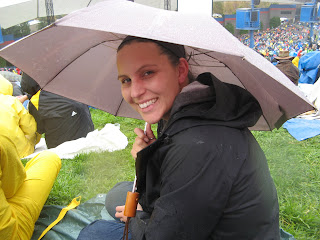 We met up with her friend Ryan and a few of his friends. It was pouring rain in San Francisco when I left and so I was decked out with my umbrella, rain coat and rain boots. It rained off and on at the Shoreline Amphitheater but I think it just made the experience richer and more exciting in the end!