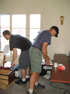 Kevin, Brian and George trying to figure out how to fit it all in the truck